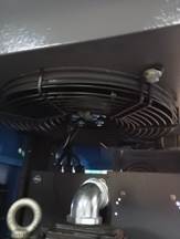 Вентилятор системы охлаждения Система охлаждения состоит из вентилятора,прводимого в движение отдельным электродвигателем. который нагнетает воздух на греющиеся части аппарата, и защитной решетки, соответственно не влияет существенно на вес и габариты всей компрессорной установки. | |