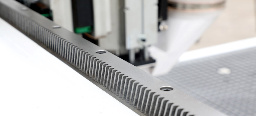 Косозубые передачи шестерня-рейка ROR (Германия) на осях X и Y обеспечивают высокую плавность хода, точность и долговечность В отличие от прямозубых, косозубые передачи обеспечивают постепенное вхождение зубьев в зацепление , исключая резкую передачу нагрузки. В косозубом зацеплении всегда находится минимум две пары зубьев , что полностью устраняет зону однопарного зацепления, характерную для прямозубых передач. Это обеспечивает снижение динамических нагрузок, минимальную вибрацию и низкий уровень шума , а также повышает общую передачную точность Для оси Z используется высокоточный ШВП (шарико-винтовой механизм) из