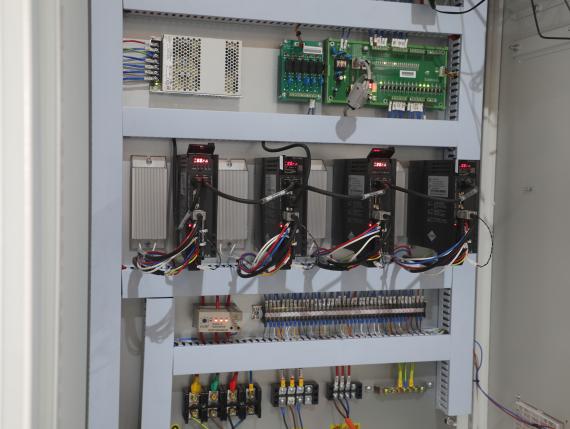 Шкаф управления Шкаф управления станком оснащен всеми необходимыми комплектующими скомпонованными отдельный блок, изолированный от вибраций, перегрева и других внешних воздействий. Все компоненты и соединения расположены на строго отведенных местах и имеют легкий доступ для контроля и обслуживания.