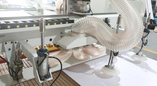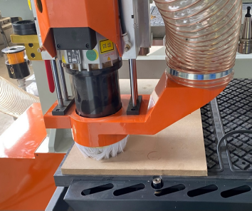 Аспирационный кожух на электрошпиндель В стандартной комплектации станок оснащается аспирационным кожухом с щетками, локализующим зону интенсивного выброса стружки и пыли во время обработки. Подключив к кожуху аспирационную установку через гибкий воздуховод вся пыль и стружка будут удаляться из зоны резания в накопитель аспирационной установки. |
