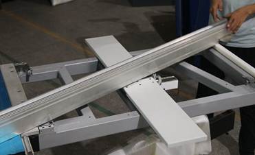 | Точная система перемещения приставного стола станка Т45 позволяет легко перемещать приставной стол по алюминиевому столу, что очень полезно при резке не очень длинных материалов или выполнении мелких работ по резке. | Боковой поддерживающий ролик форматно-раскроечного станка Т45 обеспечивает легкую и плавную подачу материала больших размеров. |
