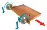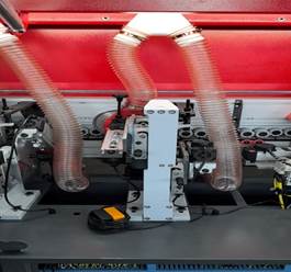 · За счет двух четырехсторонних пластин с плоским сечением ножа, расположенных сверху и снизу заготовки, убирает остатки клея и подчищает от микро неровностей. |
