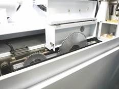 ПИЛЬНЫЙ УЗЕЛ Пильный узел перемещается при помощи шестерни - рейки. Такая система применяется на всех современных раскроечных центрах. За перемещение подрезного пильного узла отвечает бесщеточный сервомотор 1,5 кВт. Panasonic, обеспечивающий равномерную скорость подачи рабочего инструмента с максимальной скоростью до 60 м/мин. Двигатель большого пильного узла 15 Квт. Крепление дисковых пил осуществляется вне рабочей зоны станка при помощи зажимных фланцев с механической системой блокировки. В станке реализована система быстрой смены инструмента без использования специальных ключей.. Направляющая режущей рейки основной пилы с направляющей рейкой круглого прутка диаметром 45 мм. . Многоканавочный ременной привод основного пильного полотна с длительным сроком службы.
