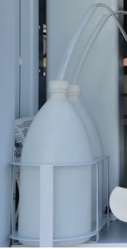 СПРЕЙ СИСТЕМА ПЕРЕД ПОЛИРОВКОЙ. Второй узел для нанесения полировальной жидкости: с помощью 2-х форсунок перед полировальным агрегатом. Это наносится очистительная жидкость. Основная задача удаление нанесенного в начале антиадгезива (разделительная жидкость) и свободных остатков клея. А так же для придания блеска обработанной кромки детали (ОПЦИЯ) |