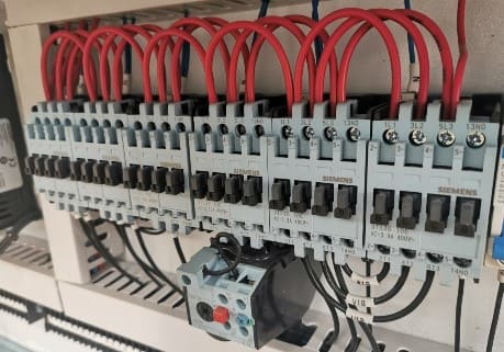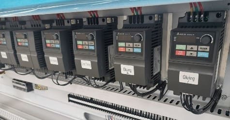 ЭЛЕКТРО-КОМПОНЕНТЫ Входное напряжение, 380 В, 50 Гц. Преобразователь частоты Delta с функцией электро-остановки двигателя от перегрузки. Логический PLC контролер DELTA. Разрешается эксплуатация в диапазоне 0 - 40°. Станок автоматически переходит в режим ожидания, когда машина перестает работать в течение определенного периода (в зависимости от времени установки). |
