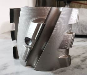 ФРЕЗЕРОВАНИЕ СВЕСОВ (Чистовое) Служит для финишного фрезерования верхних и нижних свесов заготовки. Узел фрезерования свесов с 2-мя двигателями: Мощность: 0,75 кВт; Частота: 200 Гц; Скорость вращения: 12 000 об/мин. Точность позиционирования заготовки за счет копиров большого диаметра 180 мм по плоскости с верху и с низу, а также круглых конусных копиров Ø120 мм в торец заготовки. На каждом двигателе установлены фрезы R2 Ø69 х Ø16 H13 Z4. Система аспирации эффективно убирает стружку из зоны обработки. Чистое пространство во фрезерном узле обеспечивает высокое качество обработки