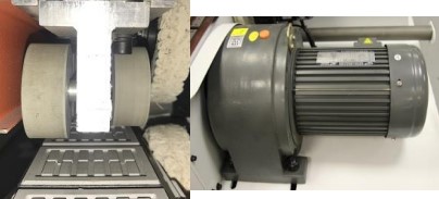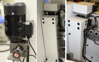 нижней клеевой ванны. Двигатель привода подачи кромки, клеевого вала и