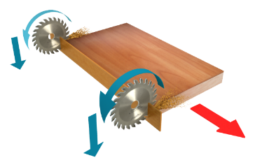 2 пилы ? 100 х 22 Z30, расположенные под углом 5°.