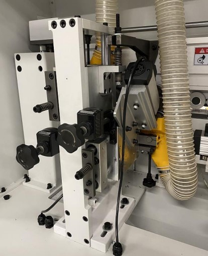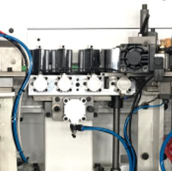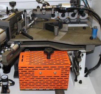 ПРЕСС ГРУППА С ПНЕВМАТИЧЕСКОЙ ПЕРЕНАСТРОЙКОЙ Приклеивание кромки к детали происходит стальными прикатными роликами. Первый ролик с отдельной регулировкой усилия давления, служит для базового приклеивания и направления кромки. Независимая регулировка усилия, позволяет предотвратить уход кромки вверх или вниз относительно поверхности. Три ролика меньшего диаметра (1 прямой и 2 конусных) служат для финального приклеивания кромки, и позволяют добиться минимального клеевого шва. Станок так же оснащен двумя типами подачи кромки в зону приклеивания: "Синхронно" и "Предварительная подача". Это позволяет добиться идеальной работы станка с любыми кромочными материалами. |